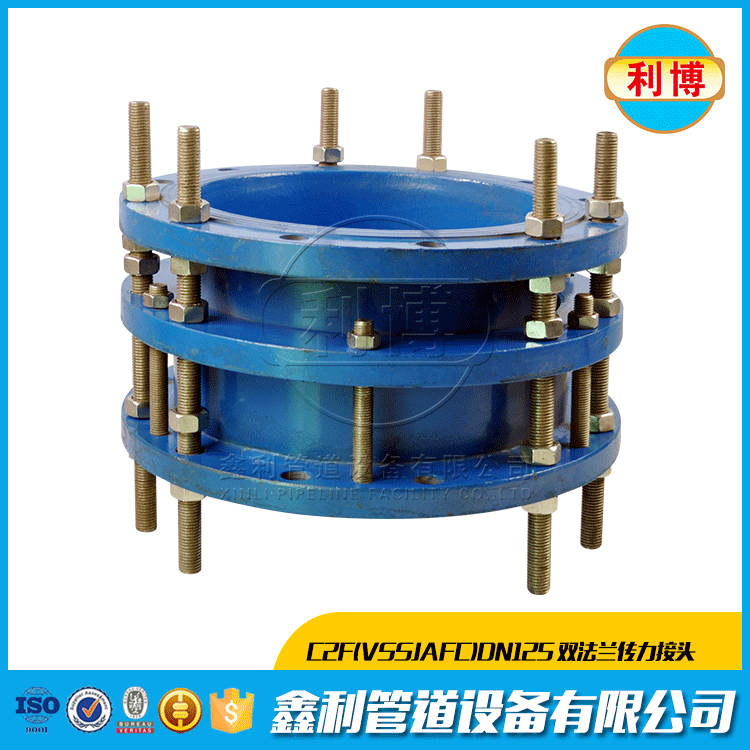 C2F(VSSJAF)型雙法蘭傳力接頭是由法蘭松套伸縮接頭和短管法蘭,傳力螺桿等構件組成,能降低被連接件的壓力推力(盲板力)和補償管路安裝誤