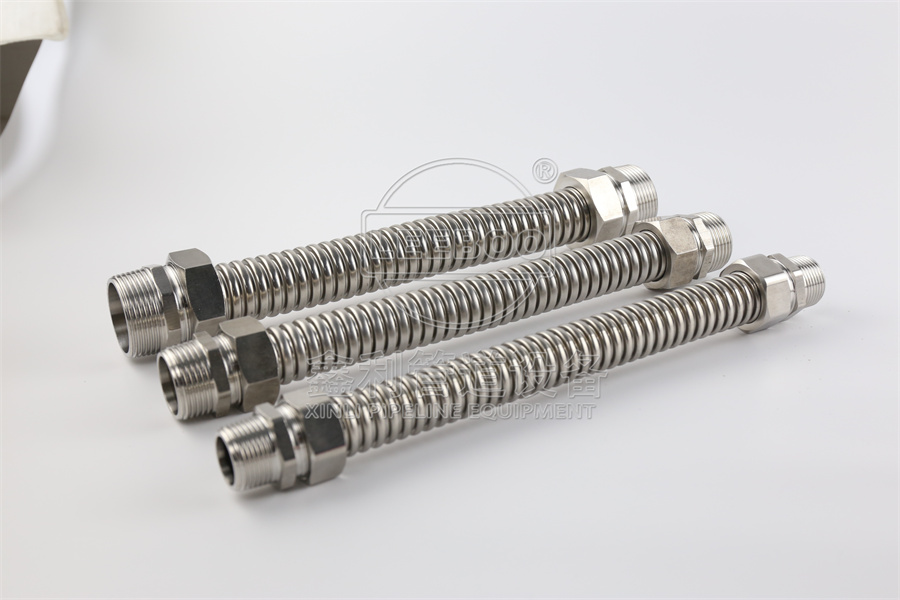 金屬軟管主要由波紋管、金屬網(wǎng)套和接頭組成。不銹鋼網(wǎng)套是安裝在壓力管道中的金屬軟管的主要承壓部件,對(duì)金屬軟管起到保護(hù)作用。根據(jù)管道內(nèi)壓力和使用場(chǎng)所,可選用一層或多層不銹鋼絲或鋼帶。